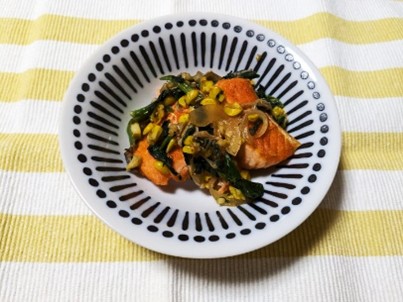 ~2日目 ほうれん草と鮭のバター醤油炒め~