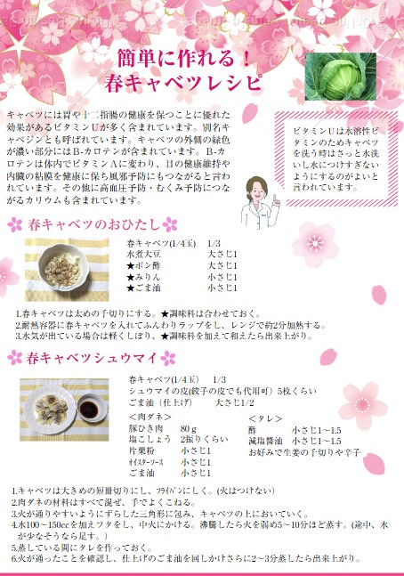 今月は春キャベツレシピを紹介します。