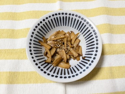 - 全体を混ぜ合わせ、汁気を軽くきってゴマをふりかけて出来上がり。