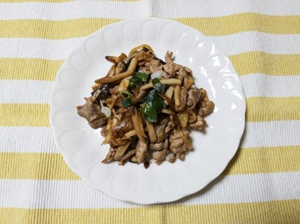 ~2日目 豚肉とエリンギのガリバタ醤油炒め~
