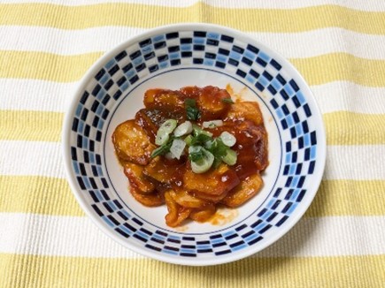 - 全体にとろみがついてきたらお皿に盛りネギをちらして出来上がり。